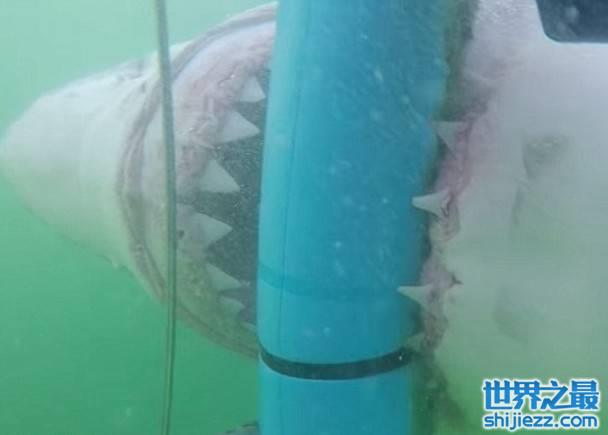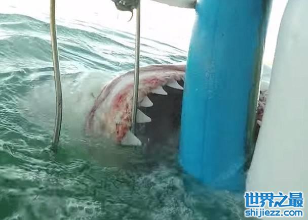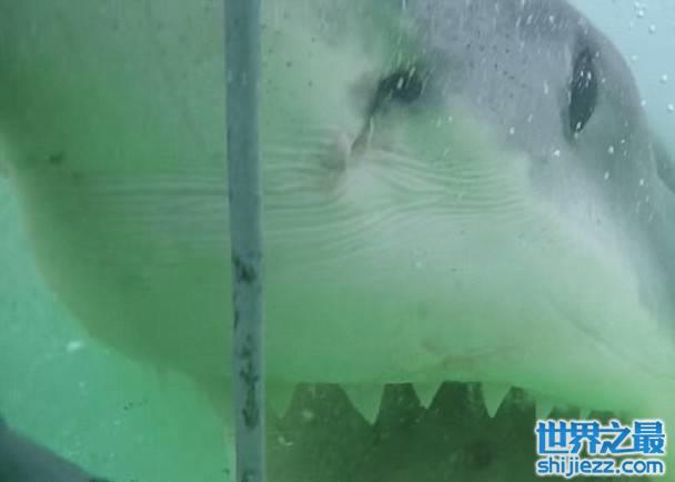 女游客彼德罗斯基(Hillary Rae Petroski)当时在莫塞尔湾潜水,一条巨型大白鲨游向铁笼,并绕着其游了数圈。巨鲨其后突袭铁笼,张开血盆大口,用力咬住角落的防护栏,露出一排尖牙,更一度与人对望,柱子被咬得发吱吱声,仿佛即将要被扯断。