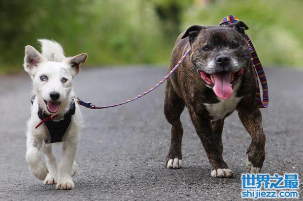 英国盲眼的混种犬葛林(Glenn)与它的导盲犬布兹(Buzz)形影不离,但早前却遭狠心主人一并抛弃。两犬一同落难,仍互相扶持,最终被送进庇护场所。两犬日前双双获收养,结伴离开庇护场所启程前往新屋,展开生命新一页。