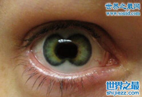 位居世界十大最奇葩怪病的双瞳人,双瞳孔是指一个眼睛里有两个瞳孔,双瞳孔的第二个瞳也会看到东西,但是效果和昆虫的复眼是不一样的,昆虫复眼的每只小眼只能看到一个像点,拼起来才是一副完整的图像,但双瞳人的两个瞳孔并不影响视觉。