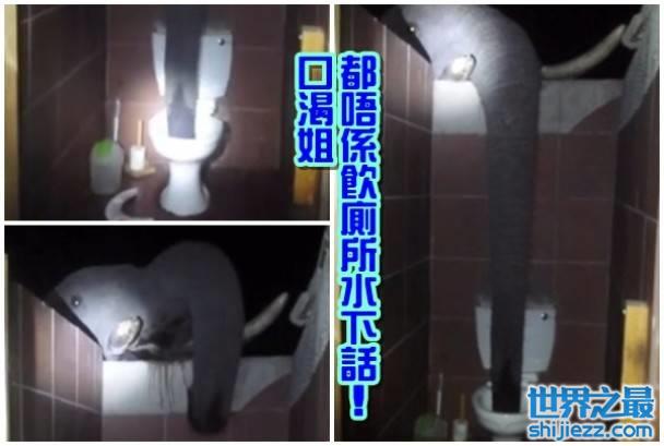 然而在大象界,亦有地位高低之分,非每只象都可饮新鲜水,当中地位较低的大象,就唯有把长长的鼻子,伸进厕所里饮厕所水。