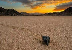 美国死亡谷那一片尘土飞扬、布满裂纹的干枯湖床上,竟然有石头完全靠自己穿越这片荒漠。有些重达300多千克的岩石在地上自主移动,甚至在在沙土上留下了一条长长的完尾巴一样的轨迹,有一些长的轨迹甚至达到了100多米以上。这些死亡谷里面“会行走的石头”的原因在这100年里成为科学家心里永远解不开的迷。
