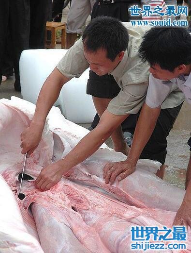 那些所谓吃人巨型鲶鱼的图片,实际上是06年北海“世界贝类珊瑚馆”的几名技术人员为制作鲸鲨标本在解剖鲸鲨的图片。