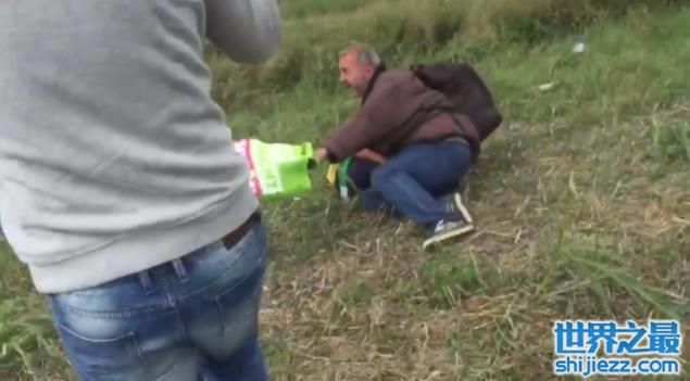 拉兹洛出脚绊倒难民