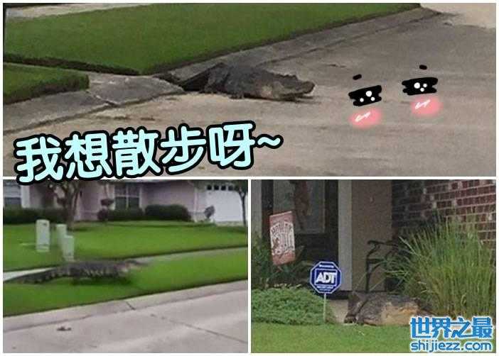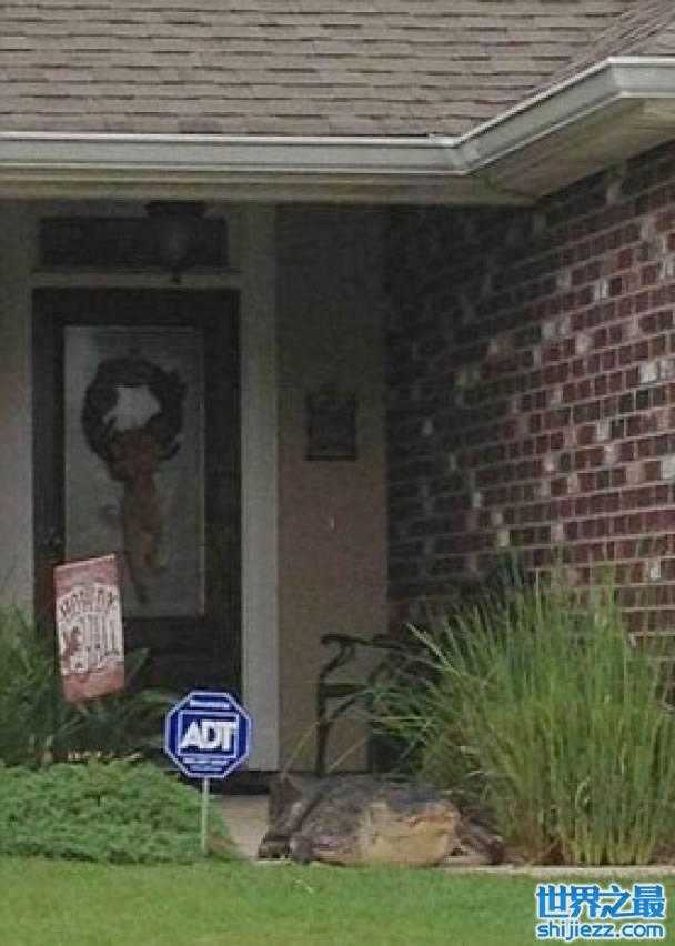 美国鳄鱼随街荡 马路爬行用头敲住宅门