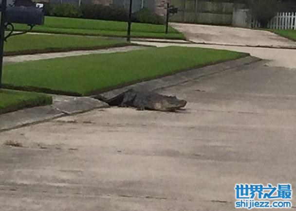 美国路易西安纳州的住宅区突然有鳄鱼出现