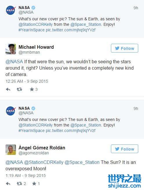 不少懂行的网友纷纷留言指出了这个错误。网友Michael Howard回复说: “如果那里出现的是太阳,我们不可能同时看到那么多星星,对吧?除非NASA的黑科技鼓捣出了全新的照相机。”而另一位网友回复得更直接:“太阳?那只是曝光过度得月亮而已!”