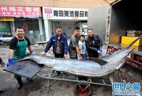 据悉,这条巨型箭鱼是青岛渔民在11 上午捕获于黄海海域,渔民指出,刚过三个月的禁渔期,黄海海域渔群数量增多,这条超级「箭鱼王」正是追逐鱼群,才会进入这片海域。目前这条大箭鱼已被拉回青岛市内,准备与市民一同分享。