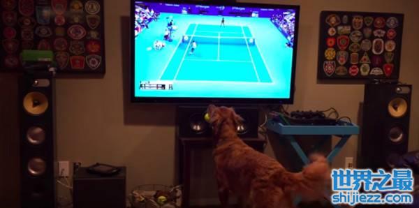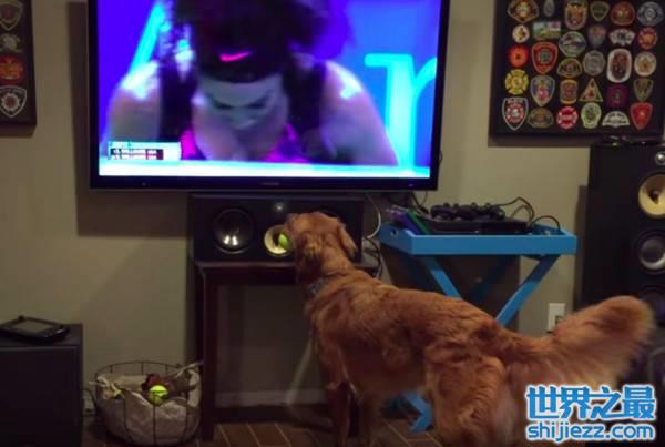黄金猎犬Georges是网球迷 咬着网球电视机前兴奋看球赛