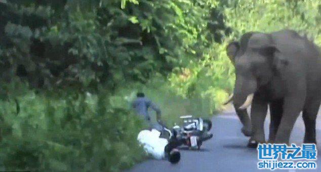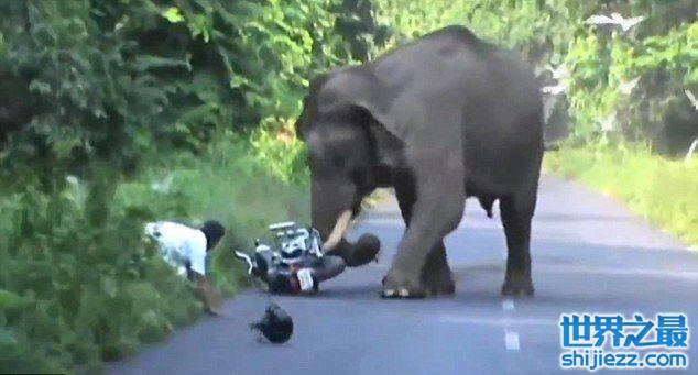 据悉,事发当天下午4点左右,一群大象正在Gorumara国家森林公园里漫步。正当一头大象在公路上稍作停留时,两名骑摩托车者横冲直撞。此时大象似乎被惹怒,主动攻击骑摩托车者,吓得两人弃车逃跑。最后相关工作人员用鞭炮声才得以将野象吓跑。