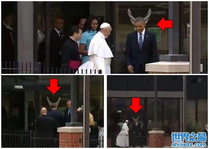奥巴马与教宗会面被拍得“露出羊角”