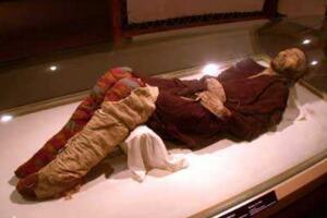 古墓群墓地位于车尔臣河西约10公里的堆积阶地上,东临古河道,面积3.5平方米,是古代且末国文化的典型代表,也是昆仑山北麓发现的最大墓群之一。其中一号墓地规模最大,墓葬分布较集中。发现这些且末干尸后在2002年7月,国务院批准且末县古墓群为国家级重点文物保护单位,除了这样的干尸,还有很多其他干尸,我们下面来看看另外一个干尸,他的故事是怎么样的。