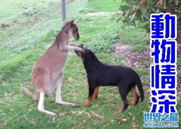 有网友近日分享一段影片,片中一只袋鼠不停摸狗狗的头,这只狗狗也示好的不断摇尾巴,它们的有趣互动让网友都融化,短短3天就有逾400篇评论。