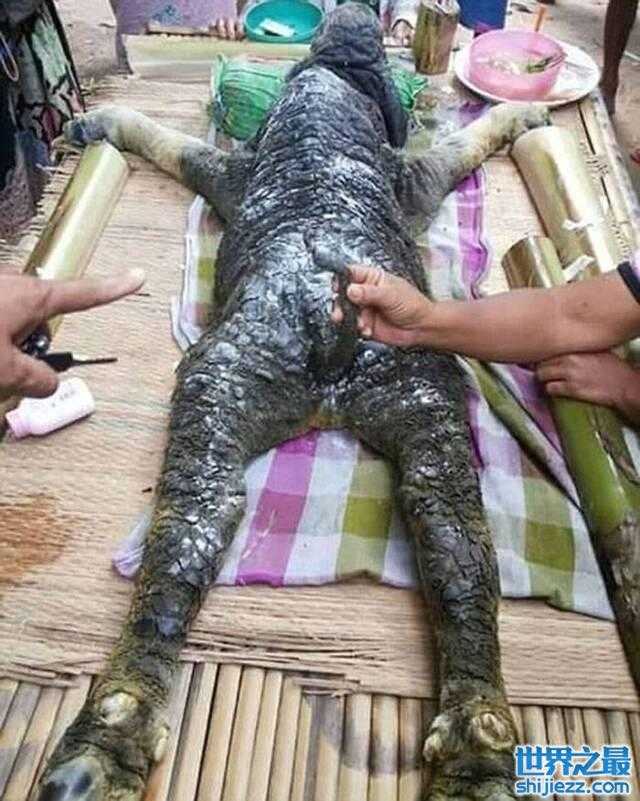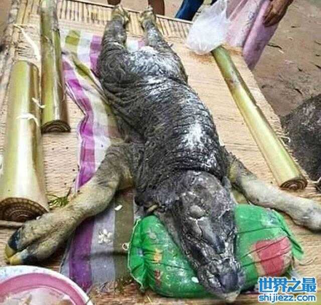 泰国旺欣偏远部落出现一只怪异“鳄鱼头”水牛宝宝当地居民将它视为好运的象征,并把尸体摆在桌上供奉。据《每日邮报》报导,这只「怪异」的水牛宝宝头部长得像鳄鱼,身体布满鳞片,而且出生没多久便不幸夭折。据了解,它的水牛妈妈之前生下过正常、健康的小水牛,但这个水牛宝宝怎么会是这副模样就不得而知了。虽然这个小水牛只有短暂的生命,不过被当地居民视为好运的象征,还把它的尸体放在桌上,让大家焚香供奉。据悉,水牛是一种大型偶蹄动物,体格粗壮、被毛稀疏多为黑灰色,也因为腿短蹄大,所以适合耕作。现在野生的水牛已经相当稀少,只有出现在印度、尼泊尔、泰国、澳洲北部等地,不过东南亚的野生水牛来历不明,可能是当地原生种或是训养的后代,也可能是两者交配的产物,就不知这个「水牛宝宝」是怎样混种还是突变来的。