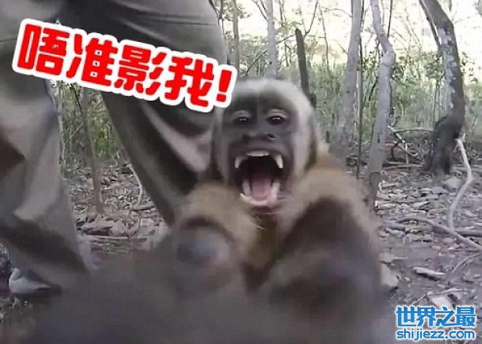 被镜头拍摄超不爽 玻利维亚小卷尾猴动手阻止