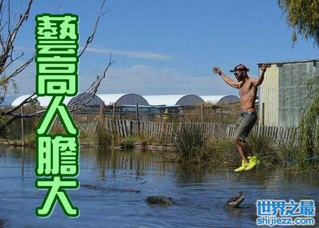 博杜安在沼泽上玩走扁带,下方的鳄鱼早已虎视眈眈。