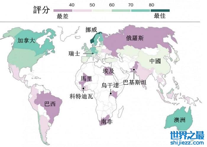 1.挪威2.瑞士3.丹麦4.瑞典5.荷兰6.澳洲7.德国8.芬兰9.奥地利10.加拿大