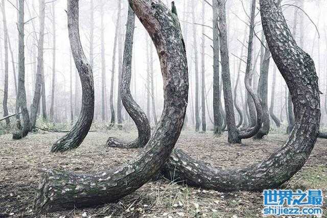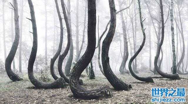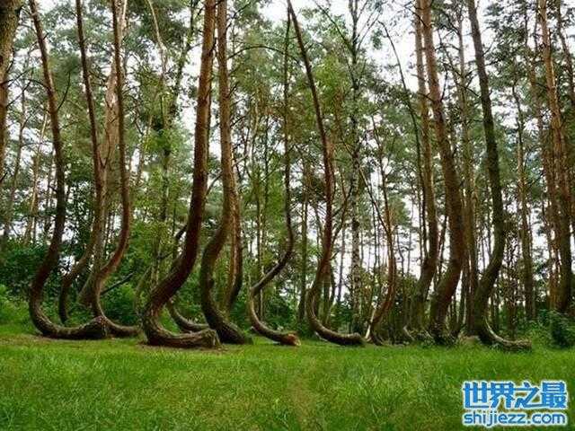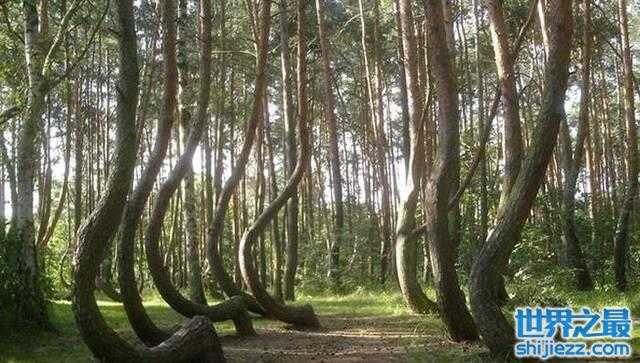波兰“弯曲森林”(Crooked Forest)里面的松树大部分都弯曲生长 ...