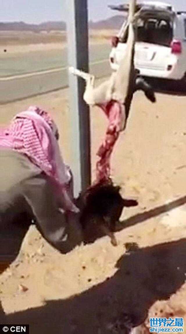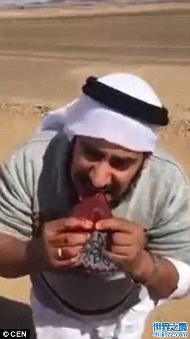 茹毛饮血:沙特阿拉伯猎人生吞血淋淋狼肉