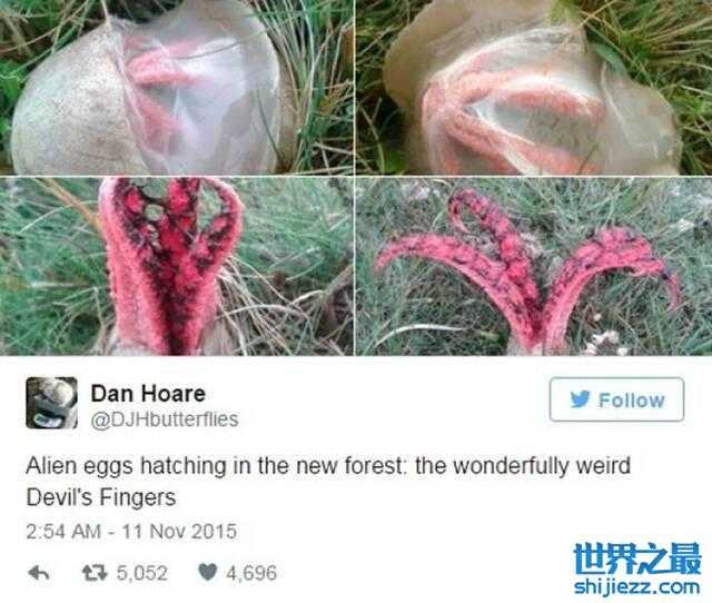 有网民就叫大家不用惊慌,因为这“东西”其实是俗称“恶魔手指”(devil's finger)的腹菌植物,只不过它的长相实在太怪异,才惹来网民多番猜测。