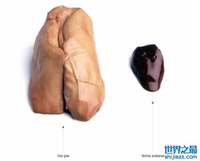 据悉鸭子遭灌食后,肝脏会被撑大近10倍。