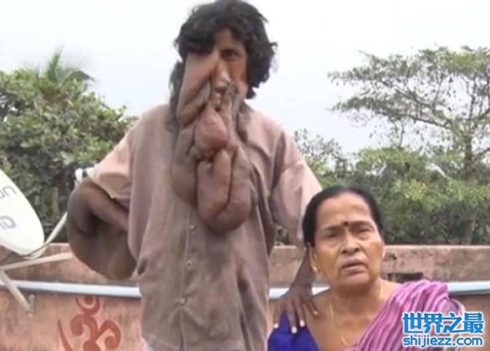 印度男子Kanai Das患罕见疾病右脸长巨瘤似“象人”