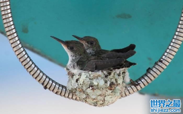 巴西两只小鸟在公共电话亭的电话线上筑巢