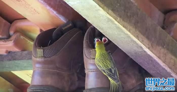 只是晒一下鞋!金丝雀拿来当「现成鸟巢」直接定居。
