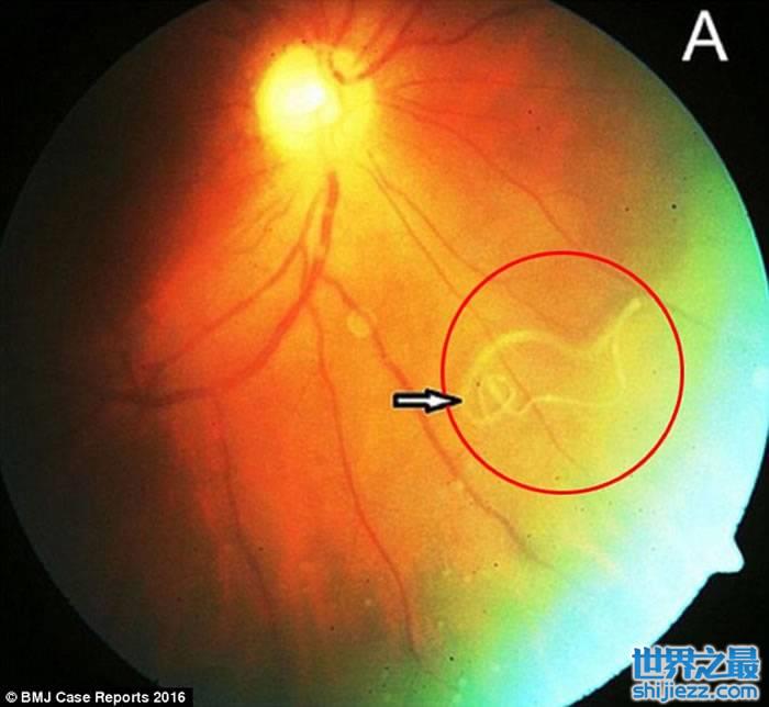 医生相信,这条虫是寄生在苍蝇上的,男子接触到曾被苍蝇接触的农作物时受感染。医生为他开出抗寄生虫药物,他视力在两周后慢慢恢复。成年的罗阿罗阿丝虫可以长至3.4至7厘米长,属蛔虫或线虫。