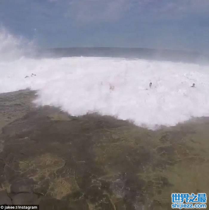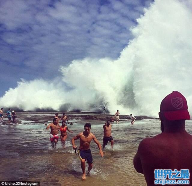 站在海岸上的游客们拍下了这一惊险瞬间。在网上流传的一些视频中,当海浪袭来的瞬间,游泳者们奔走呼号,但还是不幸被海浪拍中,卷入海中。