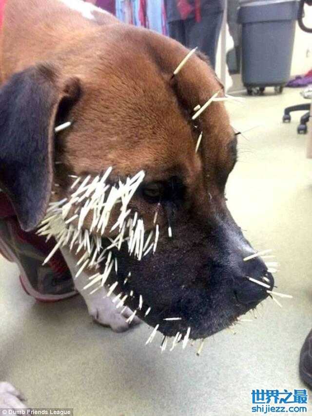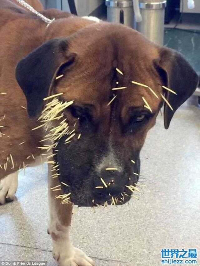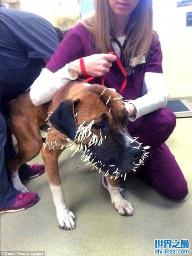 美国混种拳师犬遭箭猪攻击 身上插有数百支箭