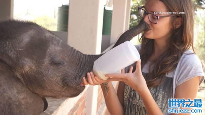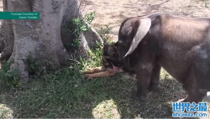 南非小象被妈妈抛弃成为孤儿 和德国狼犬成为朋友