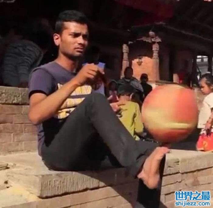 尼泊尔男子Thaneswar Guragai身怀绝技:可用身体多个部位转篮球