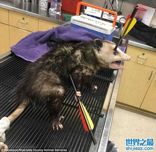 看见都觉得痛:美国加州负鼠惨中“穿头箭”不死