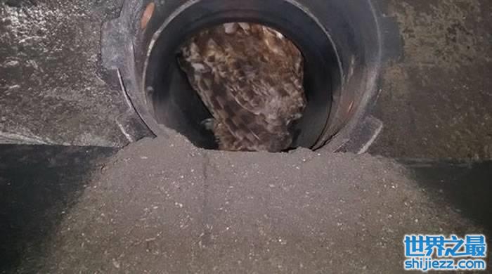 英国女屋主发现自家烟囱卡了一只满脸不爽的猫头鹰