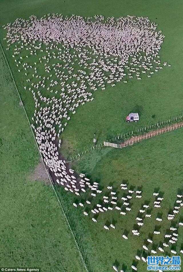 新西兰无人机从高空拍摄数以千计绵羊放牧的震撼一幕