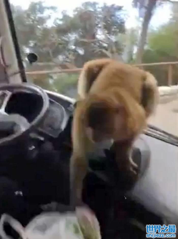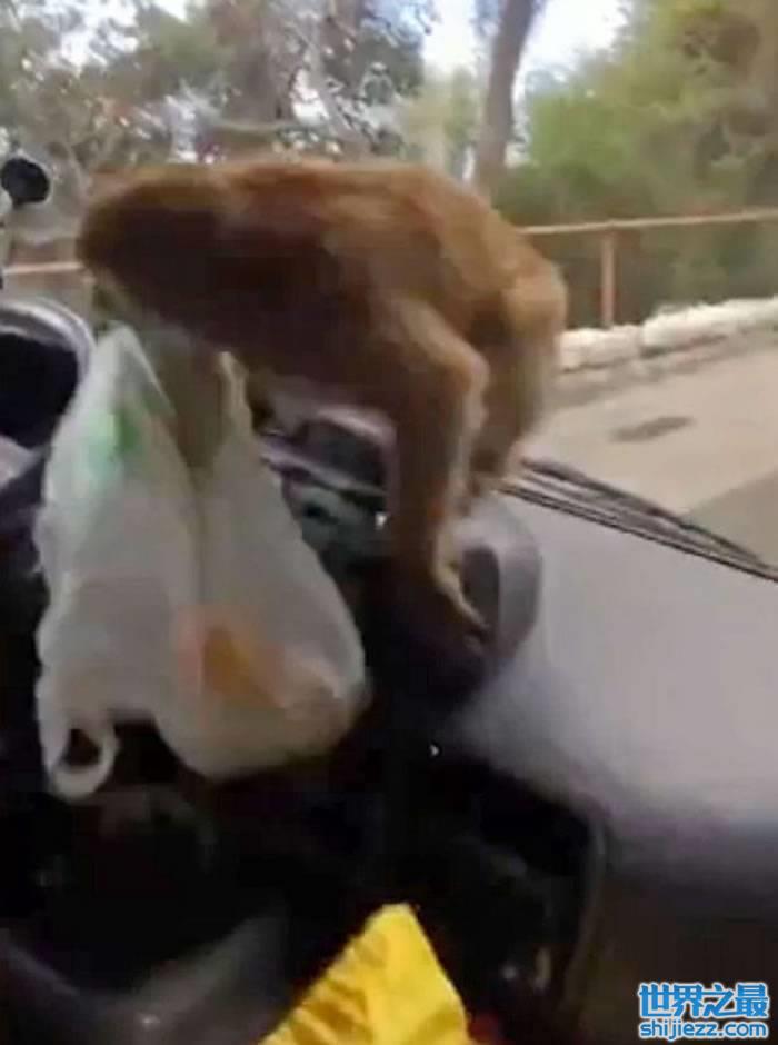 西班牙顽皮猴子搭乘顺风车并趁机“掠夺”司机午餐的搞笑视频在网上流传