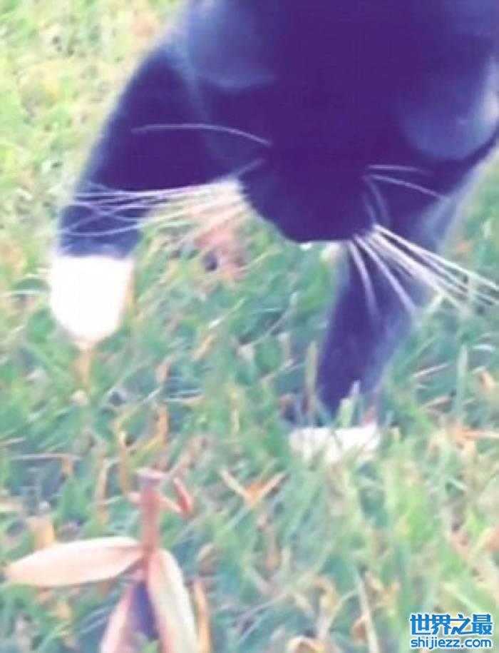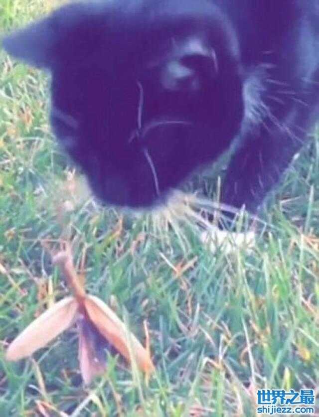 据黑猫主人拍下的短片可见,两岁大的黑猫当日在草堆中看到螳螂后,便挥拳欲抓向对方。岂料,螳螂突然站起,并一拳击向黑猫,令猫咪转头就走,惨被击退。