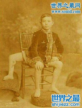 这个男人能够拉伸出任意身体部位的皮肤,且能随意弯曲脚趾和手指。他患有“埃勒斯-当洛综合征”(又称弹力过度性皮肤),跟随巴纳姆演出多年。