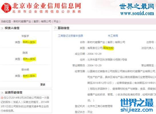 其中有很多个个人股东,央企是不可能有个人股东的。那我们看看出品方——新时代健康产业(集团)有限公司: