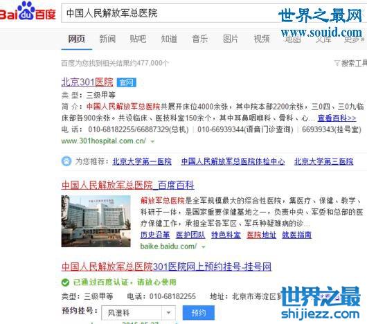 上面图片里两个研究机构,看起来好高大上啊:中国人民解放军总医院和慕尼黑技术大学。那我们继续百度一下:中国人民解放军总医院就是俗称的北京301医院。