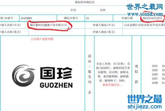 国珍商标的注册日期是2013年10月,而且于2014年10月被驳回复审中。也就是国珍现在不能被称为注册商标,而且注册主体是烟台新时代健康产业有限公司(一个港澳台合资企业)。也就是商标不是国家的,并且还没注册下来。