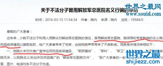 另外2016年3月15日,解放军总医院官方网站发出声明:
