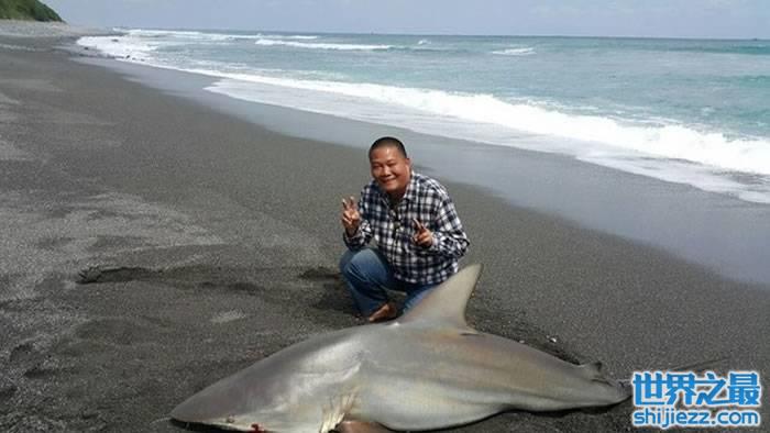 台湾台东海边钓到120公斤鲨鱼——公牛白眼鲛