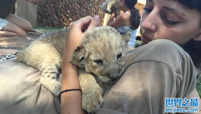 游客付钱玩小狮子,而这些才出生2周的宝宝为了找妈妈不断哭泣。