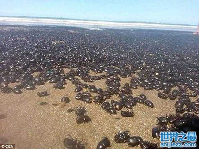 阿根廷度假区海滩被百万甲虫入侵