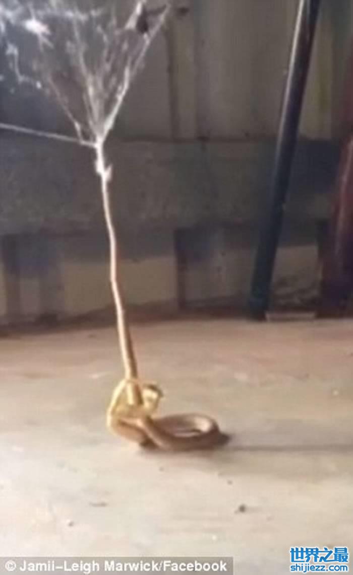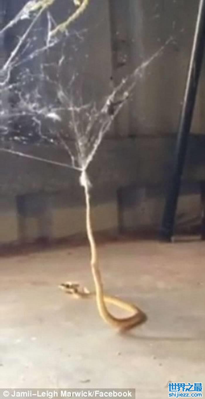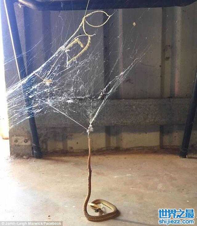 澳大利亚西部一户家庭后院毒蛇落入蜘蛛网无法脱身