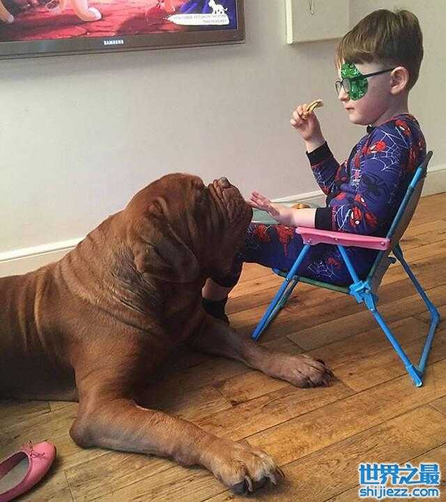英国波尔多獒犬发现小主人有眼疾 保住他的视力