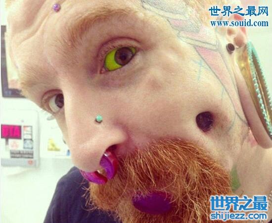 2008-2-29加拿大多伦多男子男子鲍利·盎斯多普波为了成为世界上第一个在眼球上纹身的人,鲍利的眼球被针头刺入40次,终于将眼球染成了蓝色!这种特殊的蓝墨水中混合有抗生素眼药水,以防鲍利的眼睛在“文身”后发生感染。鲍利拥有完好的视力,而他接受这项“眼球文身”手术显然在拿自己的视力当赌注。
