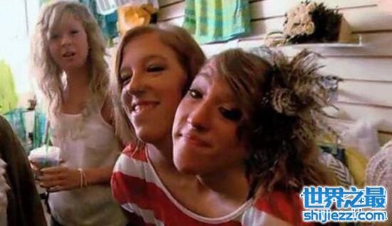 阿比盖尔和布列塔妮是一对姐妹,但她们俩却是世界罕见的双头人,她们共用一个身体,却有着两个头两颗心脏。本来医生说她们活不过24小时,但最后阿比盖尔和布列塔妮却奇迹般的一直健康生活至今,已经27年了。