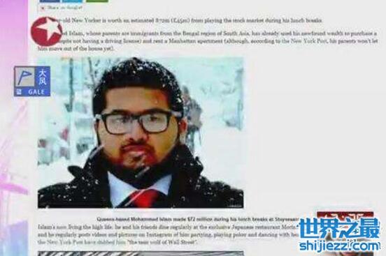 对于一般人来说,17岁正是埋头苦读奋战高考的时候,而美国纽约的一名才17岁的高中生,似乎天生有发财命。他就是高中生炒股赚4.5亿的主角——伊斯兰(Mohammed Islam,台媒音译),他已经在股海征战8年了。